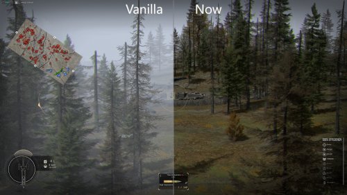 Улучшена видимость окружения на всех ванильных картах SP&MP (включая все DLC) и на картах с модами, использующими ванильный набор окружения (например, Tom's German Liberation Skirmishes).