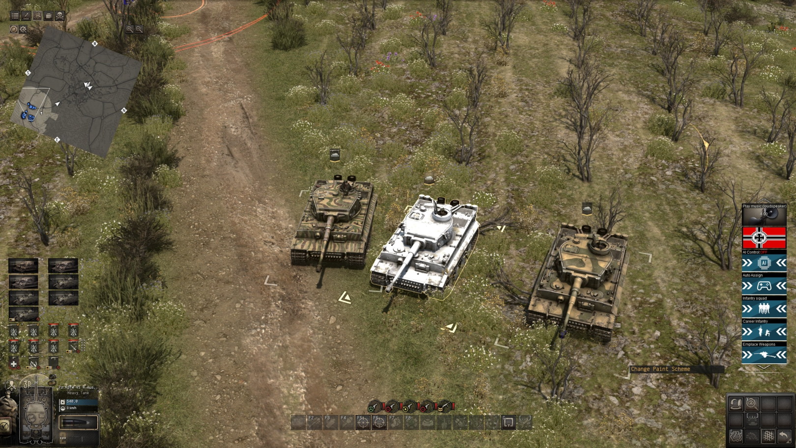 В настройках юнитов меню Генерации вы можете найти переключатель зимнего / пустынного / лесного / камуфляжного камуфляжа, он изменяет камуфляж сгенерированных вами юнитов, генерация вступит в силу только тогда, когда вы включите его, он влияет на ваши сгенерированные неокрашенные юниты, но не на другие. блоки и агрегаты, которые уже были покрашены. (Осторожно! Поскольку в Hellgate в настоящее время нет программы "Раскраска в пустыне", я просто отложил ее для Великобритании, и сейчас она бесполезна).