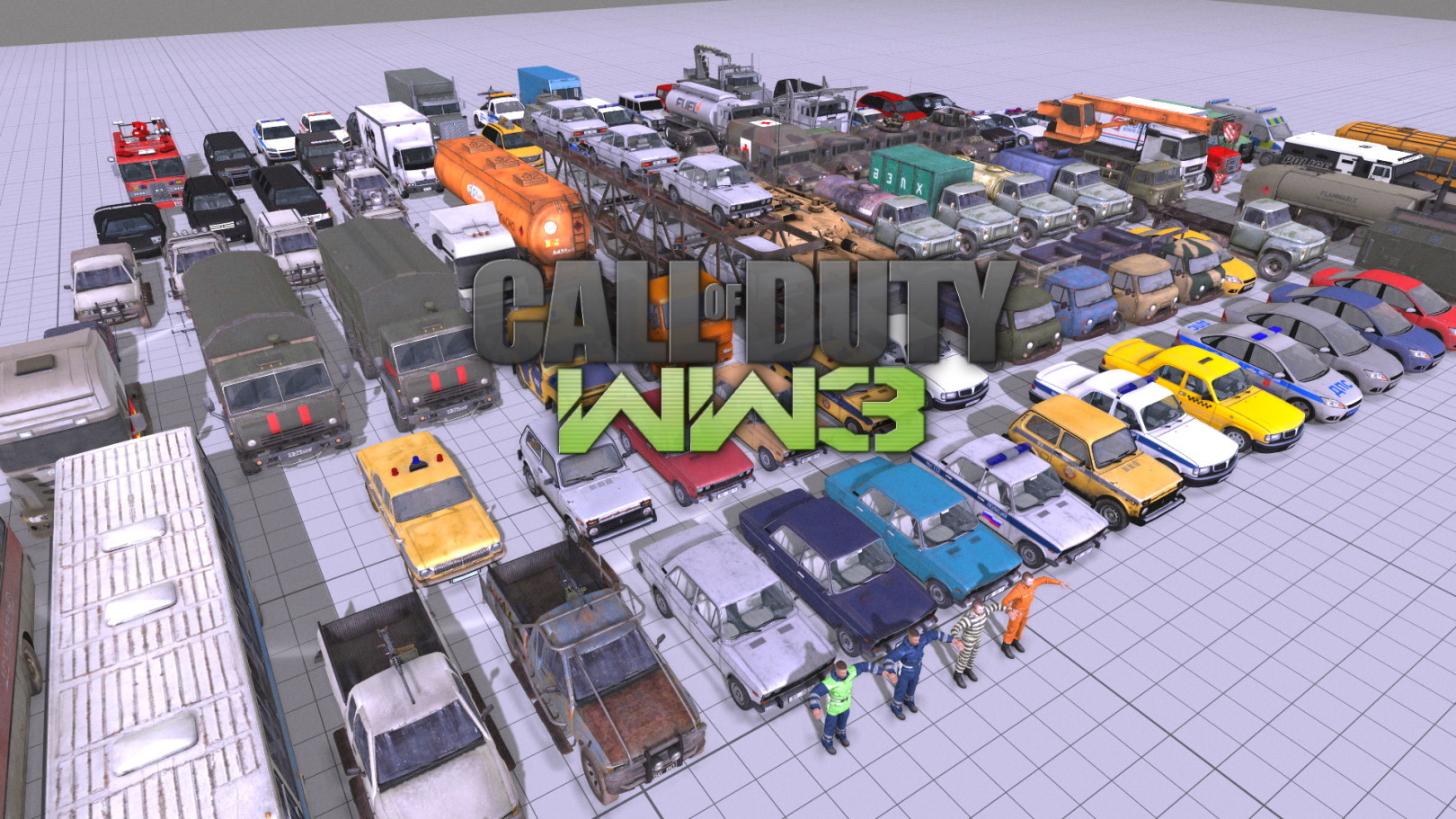 Добавляет легковые и грузовые автомобили. Хороший контент для городских сражений в сочетании с ресурсами Call of Duty WW3. Бонусом несколько гражданских и полицейских скинов. Для редактора.