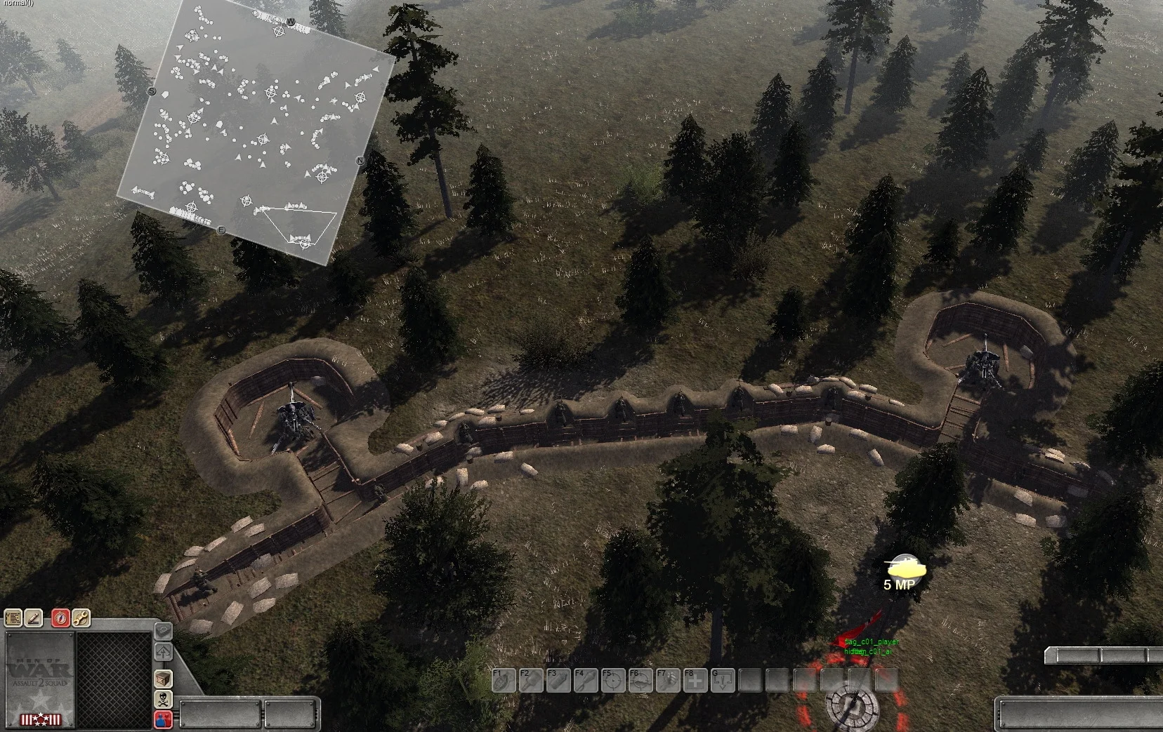 2. Если солдат ранен, то на миникарте будут отображены жёлтые крестики.